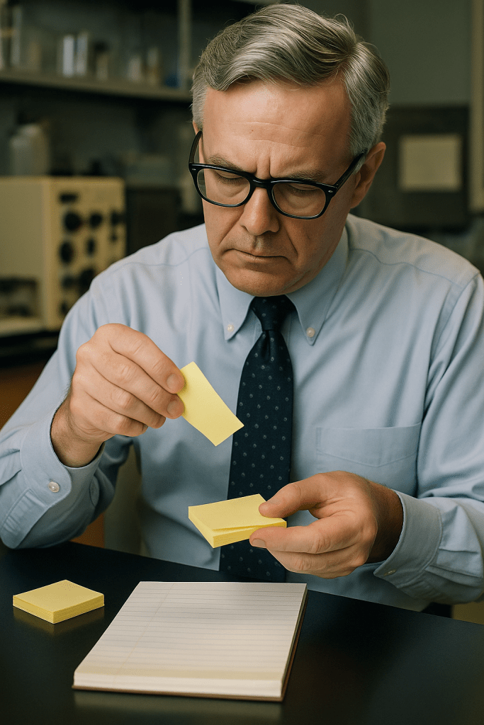 Jenže výsledek byl pravý opak: Silver vyrobil lepidlo, které drželo jen trochu — sice lepilo, ale dalo se kdykoli snadno odlepit bez stop.
