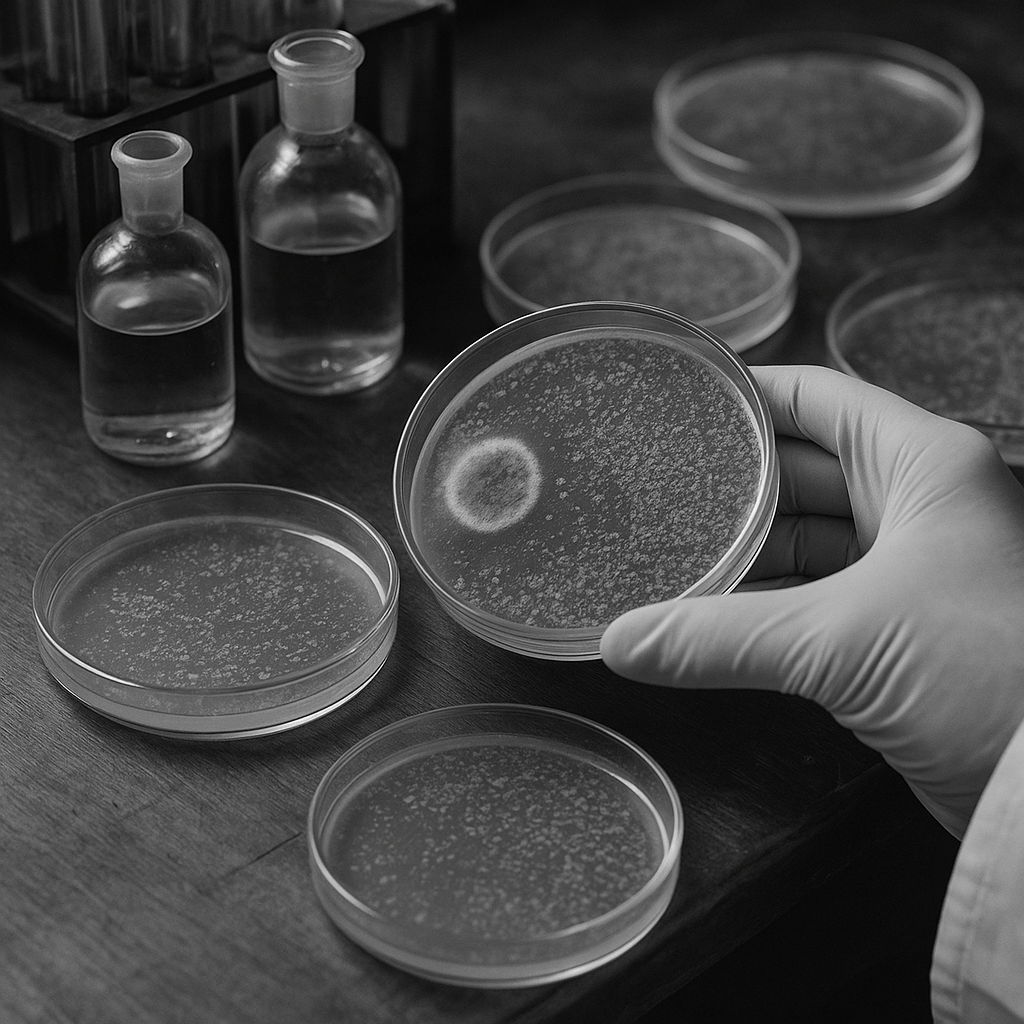 Po návratu z dovolené si Fleming všiml: na jedné misce byla plíseň — a kolem ní čisté místo bez bakterií. Mikroorganismy se plísni „vyhýbaly“.