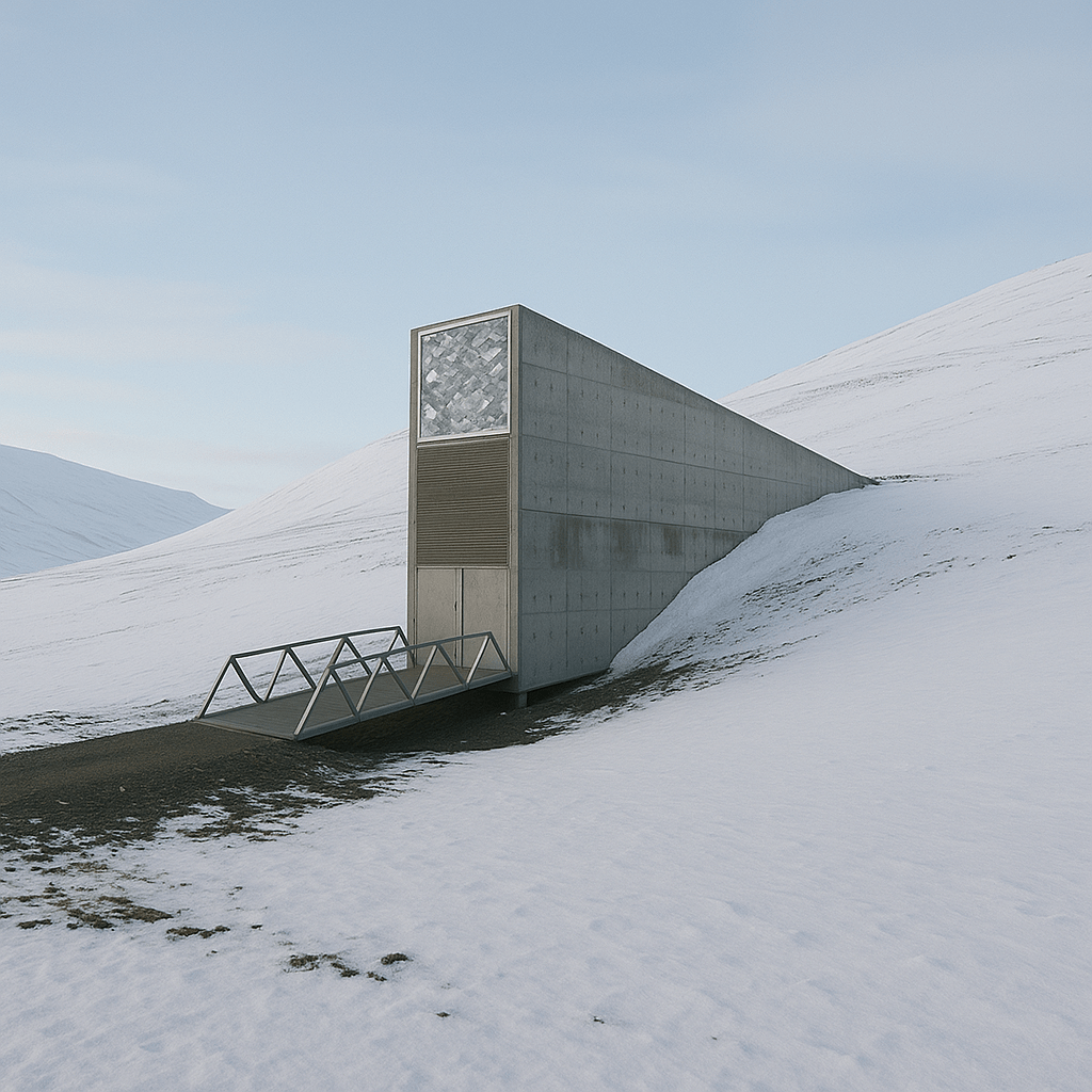 Tento sklad semínek je záloha pro potravinovou bezpečnost planety. Je ukryt hluboko v arktické hoře a je navržen tak, aby odolal i katastrofám.